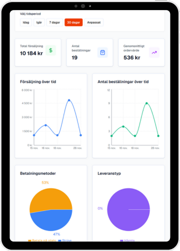 En helhetslösning för att ta emot beställningar direkt från dina kunder. Ingen mellanhand, inga höga avgifter - endast 5% transaktionsavgift.